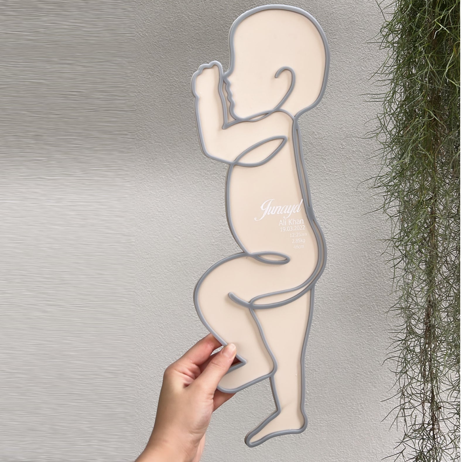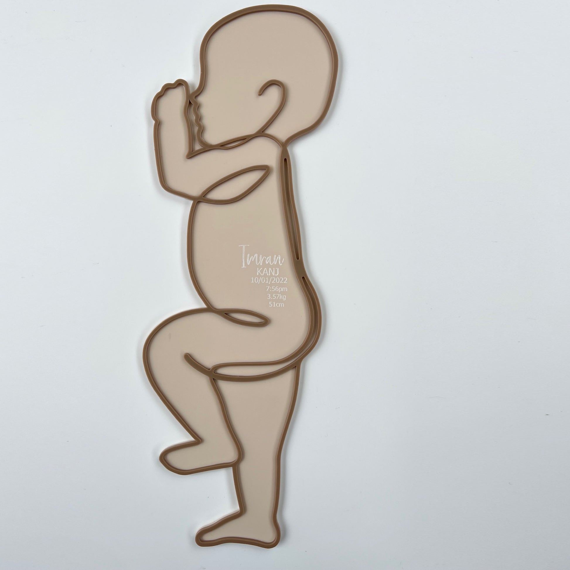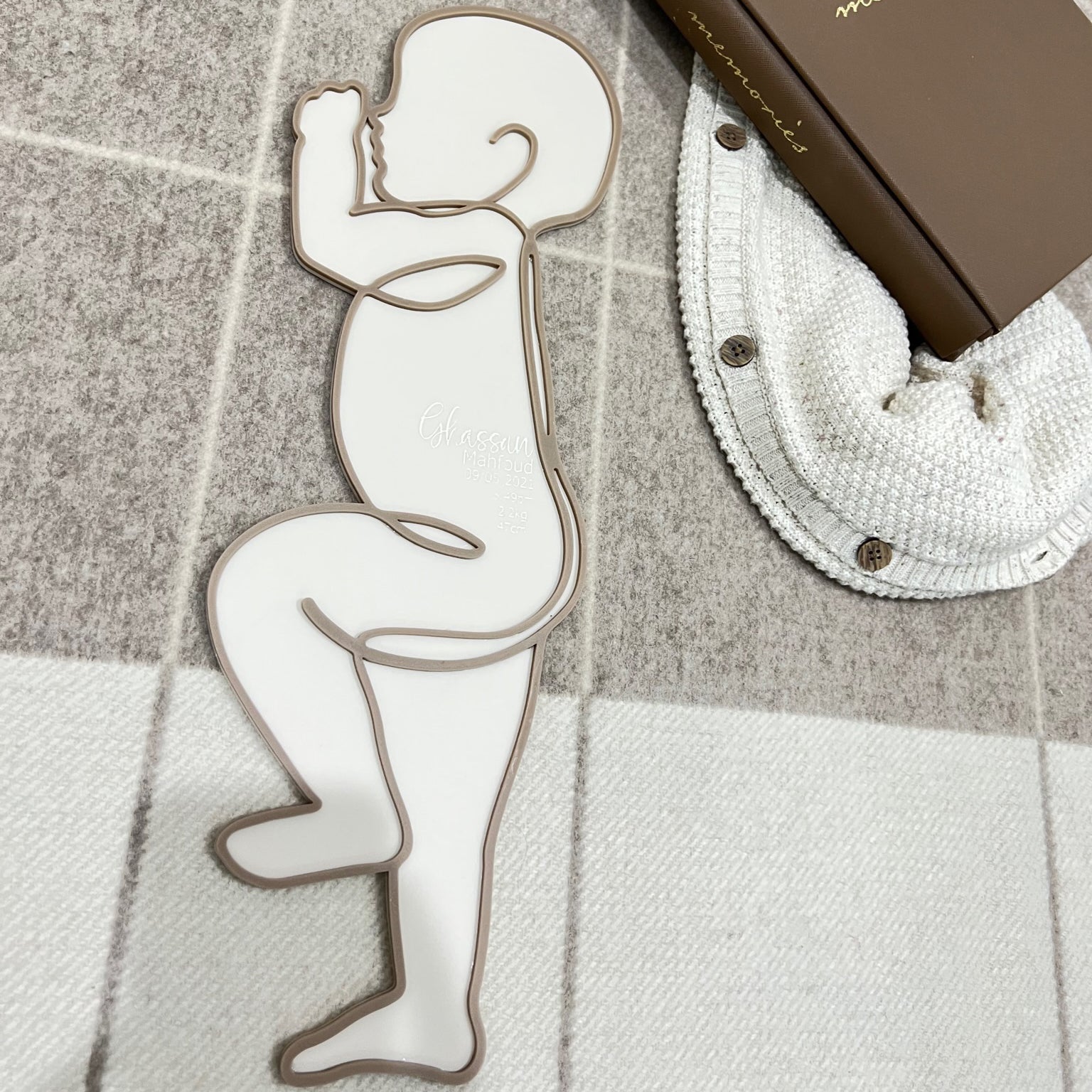 Our 1:1 actual birth plaques are cut to the height your little one was at birth. Simply write in the text above the details of your baby at birth, our team will then make your custom birth plaque the same height of your little one was born and engrave the details on the plaque. A sentimental piece which you can place in the nursery or have as a keepsake forever.