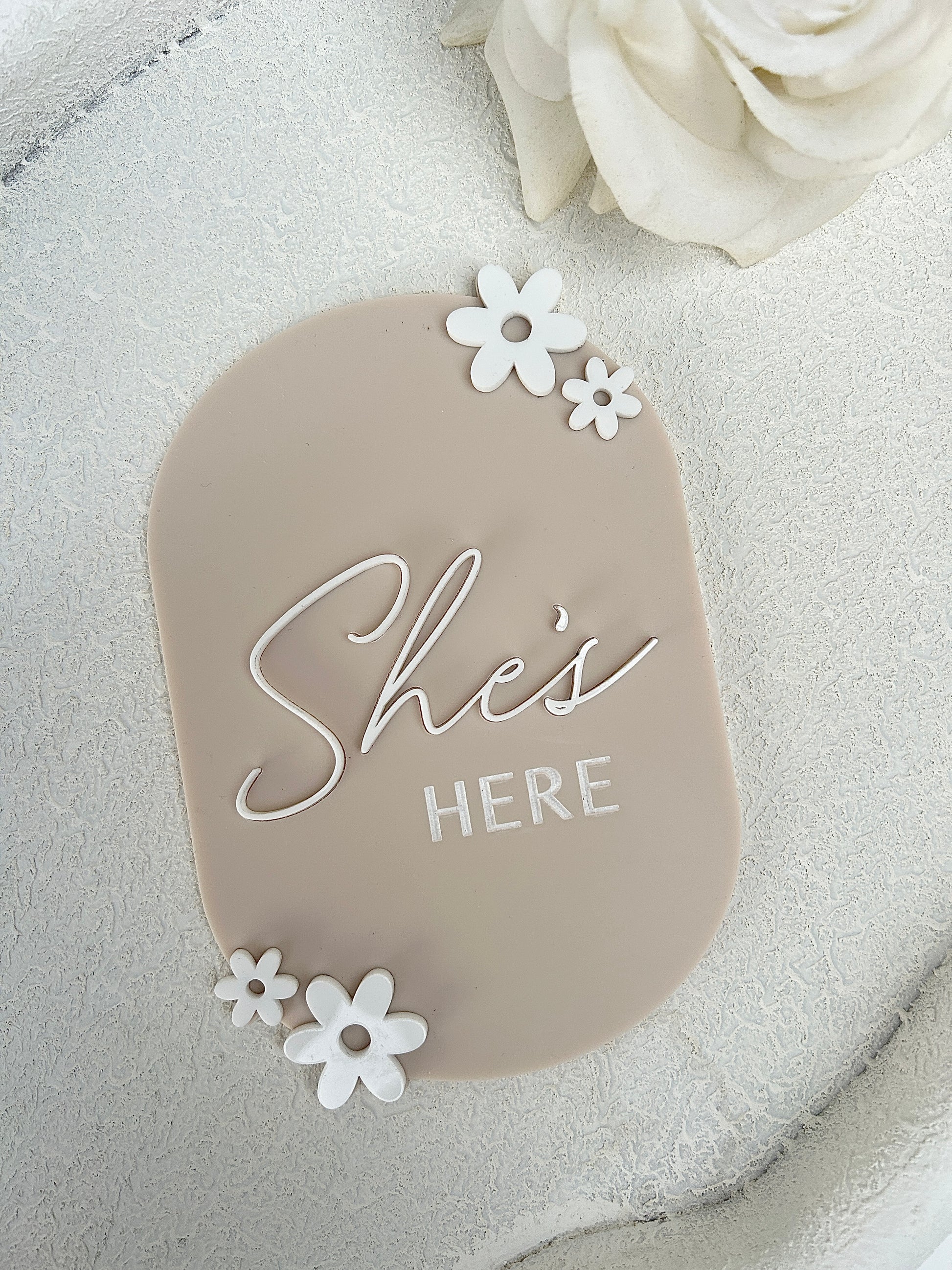 2x ‘she’s here’ & Detailed Welcome Plaque