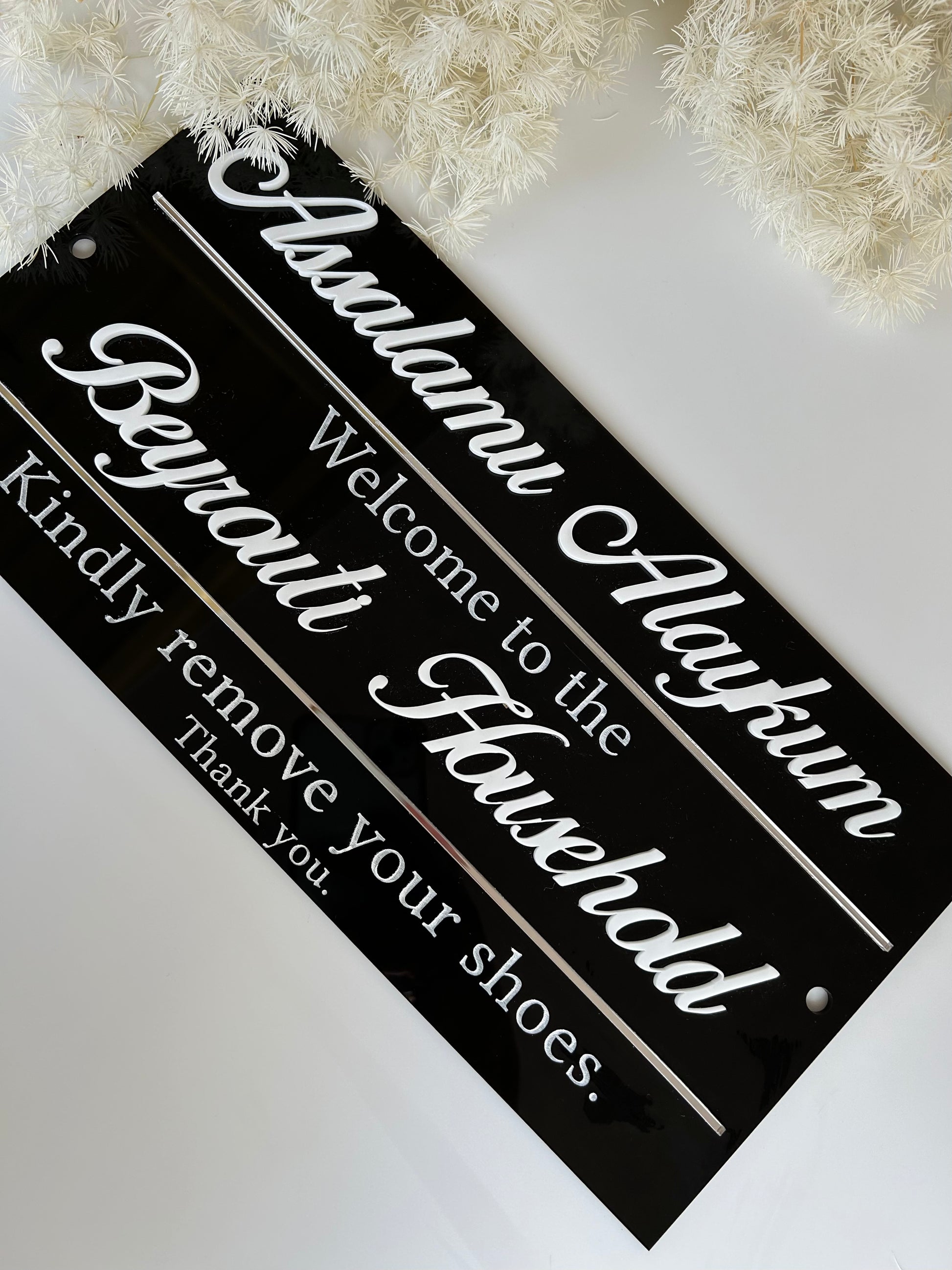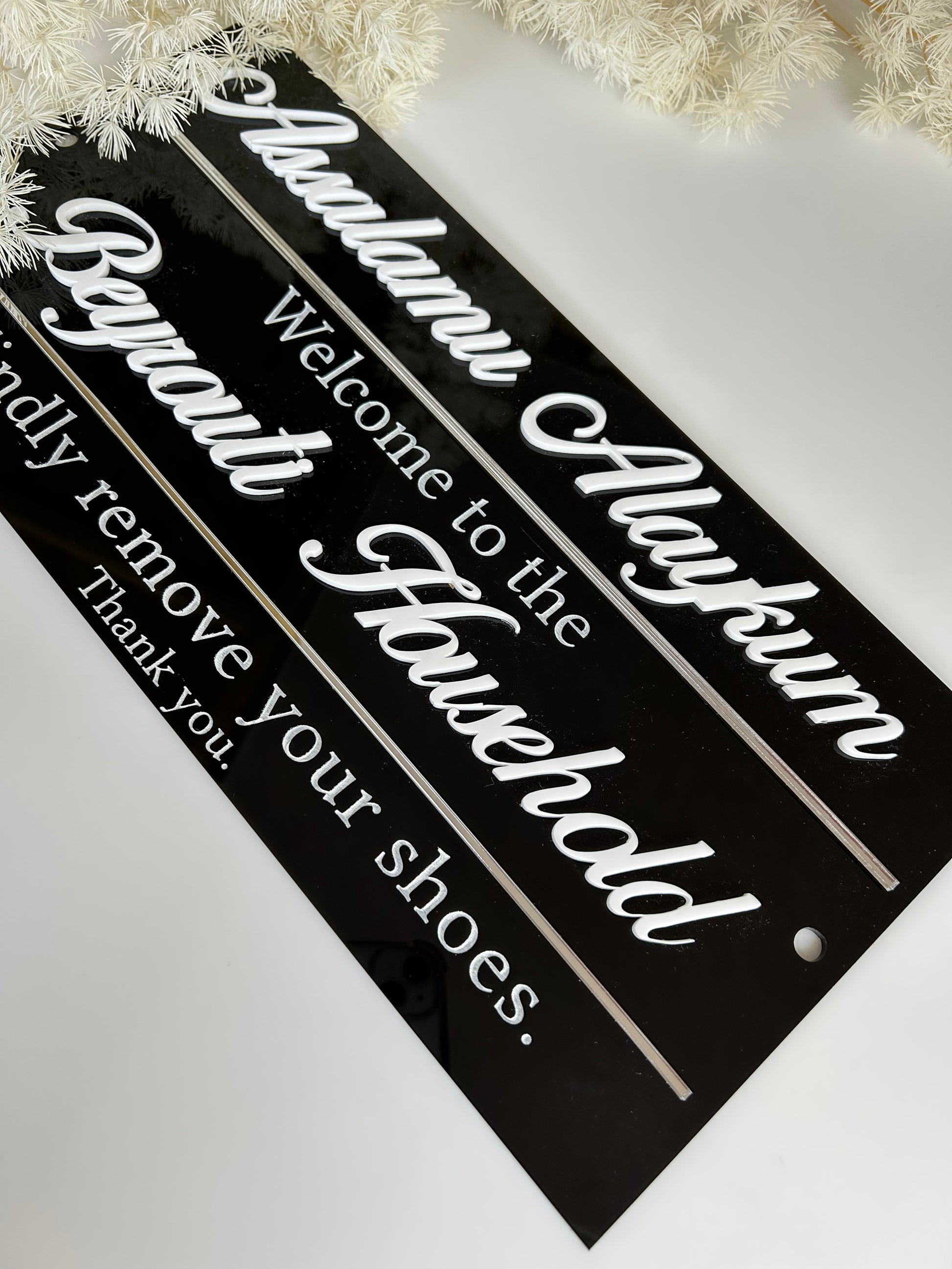 Place this plaque upon your home entry way to welcome your guests and to also kindly remind them to take off their shoes upon entering your home.
