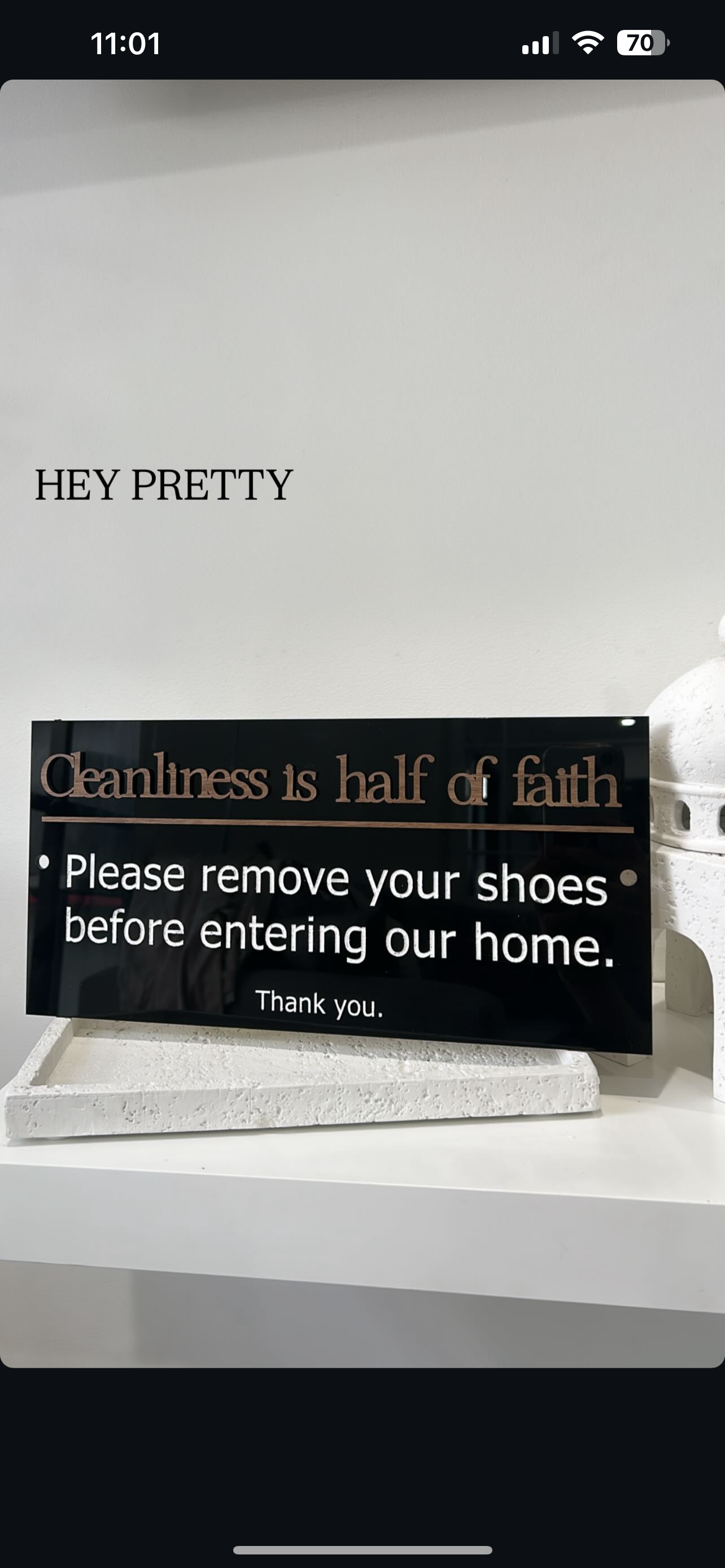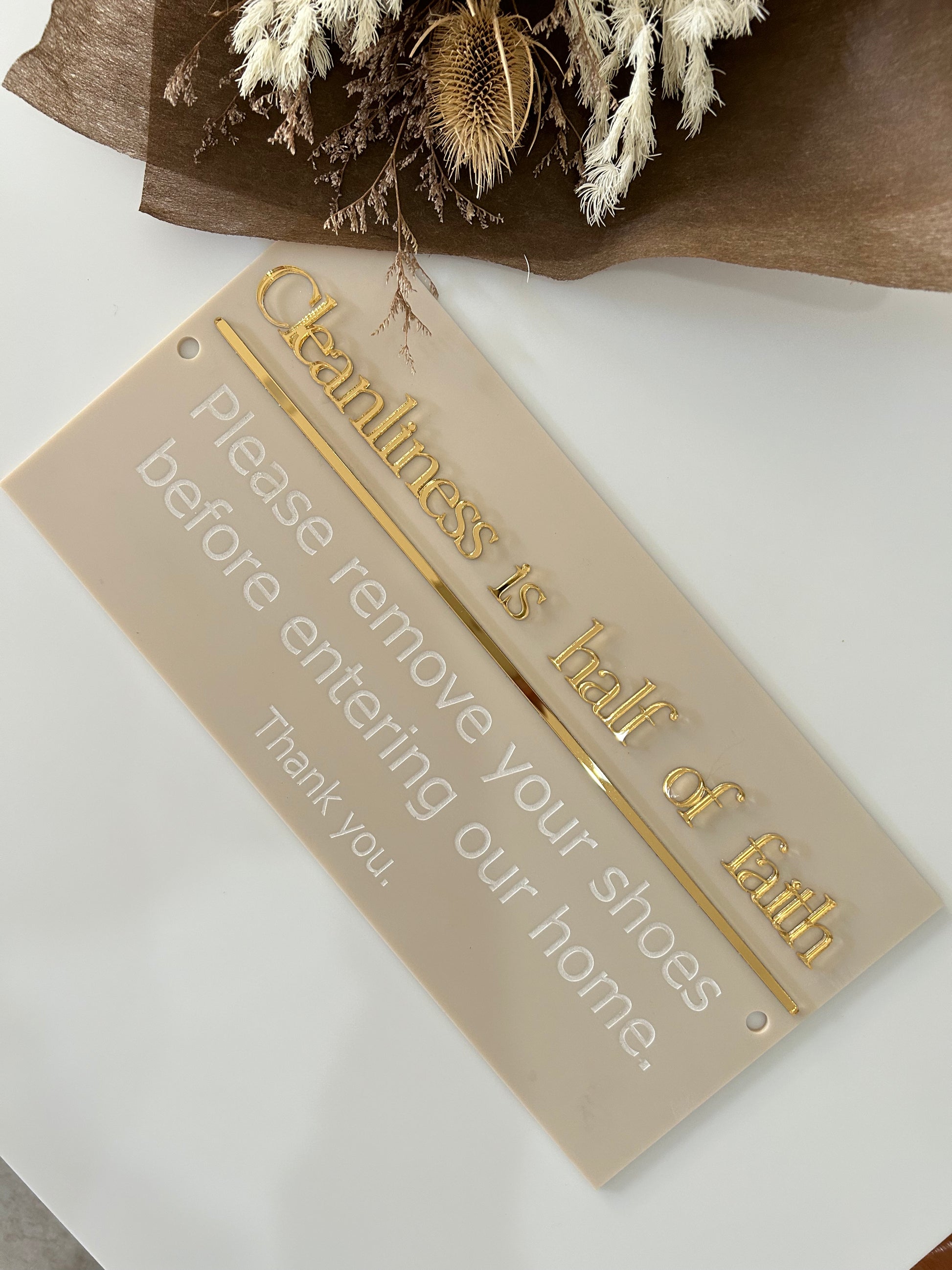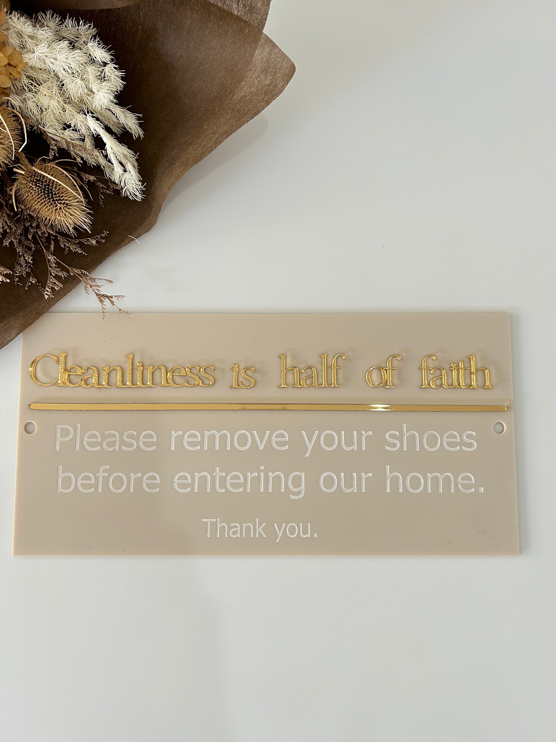 Place this plaque upon your home entry way to kindly remind your guests to take off their shoes upon entering your home.