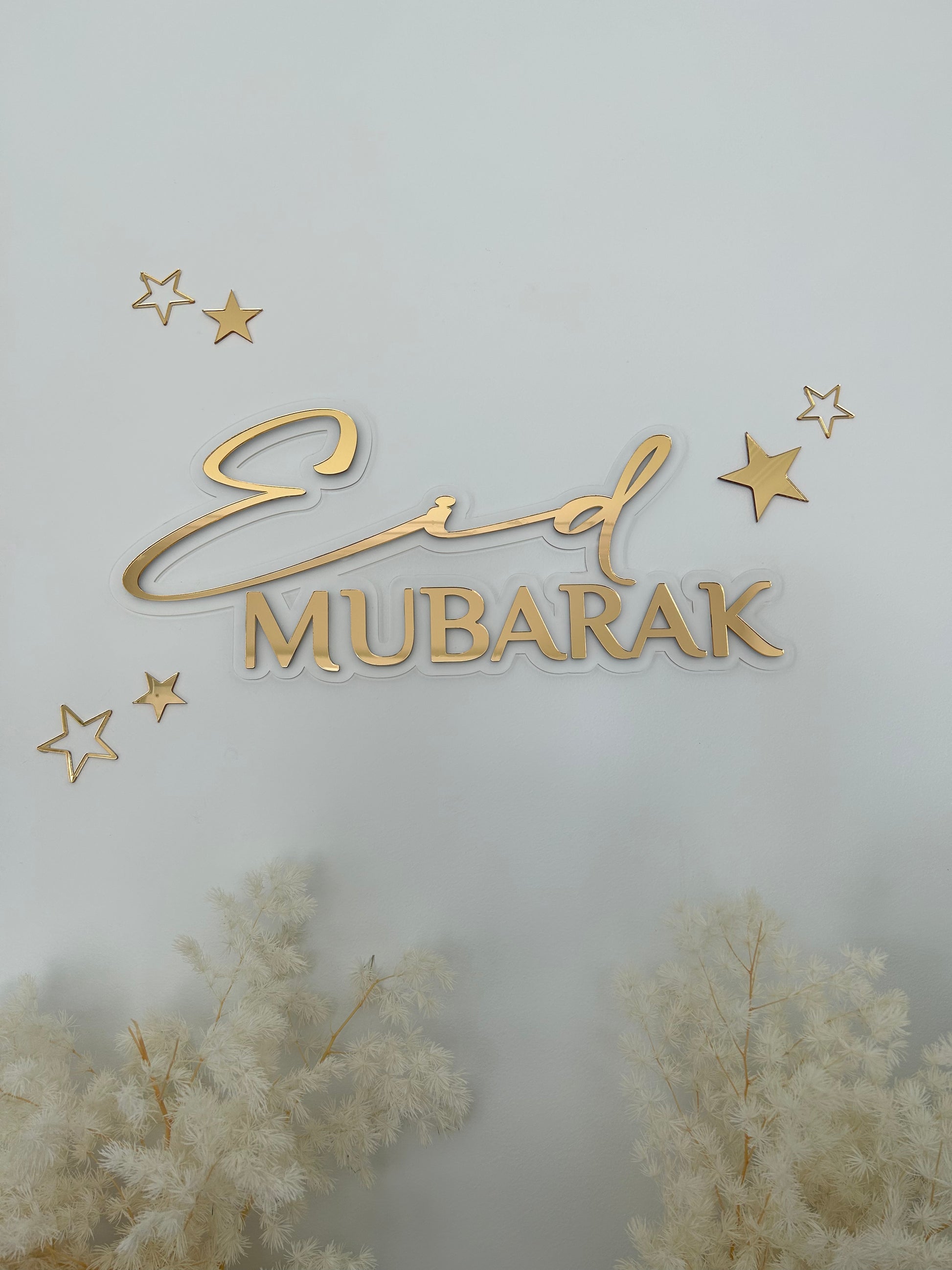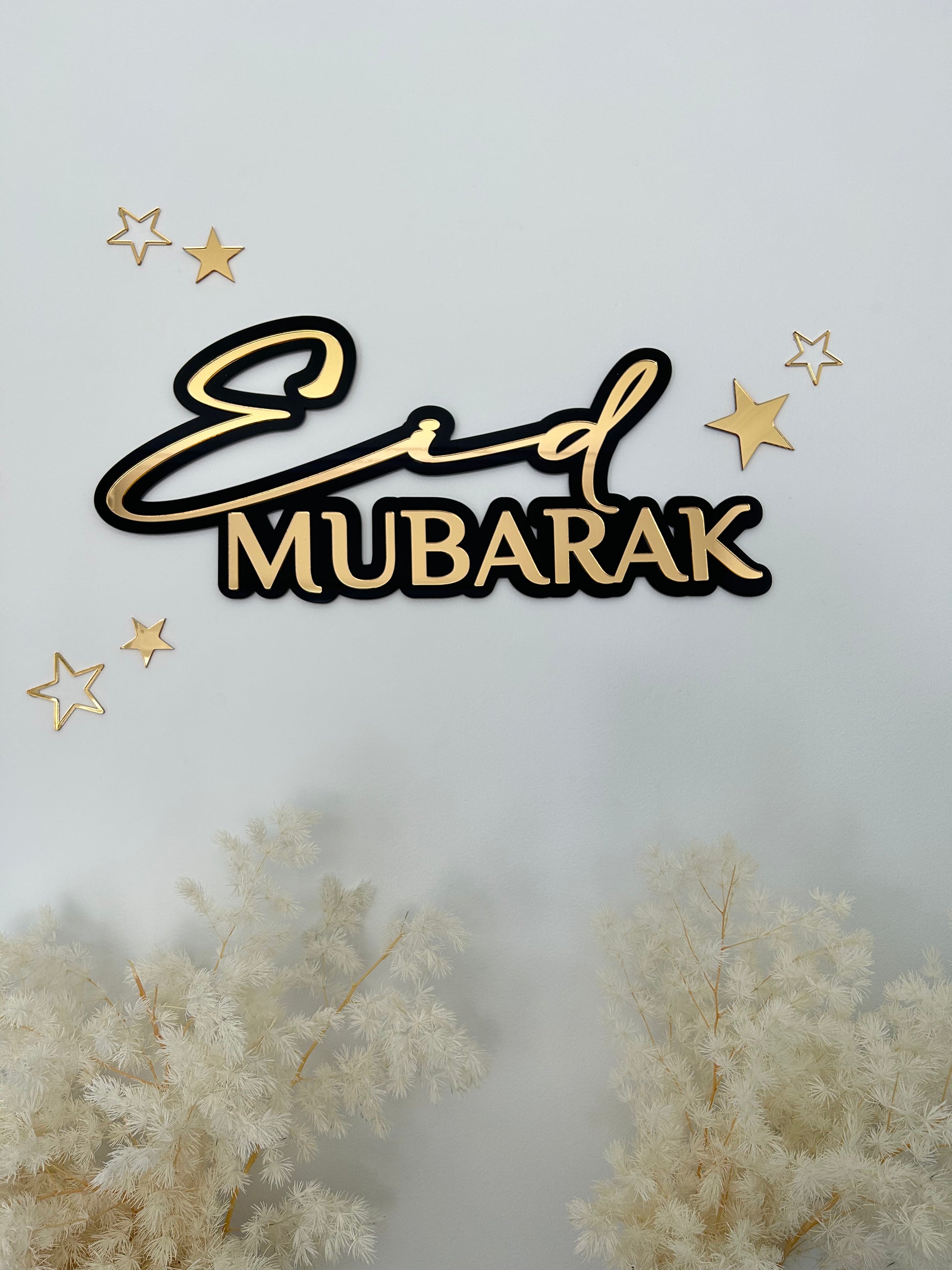 Elevate your Eid decor with our ‘layered Eid Mubarak’ plaque alongside a set of 6 stars.