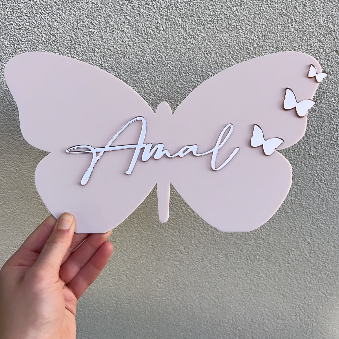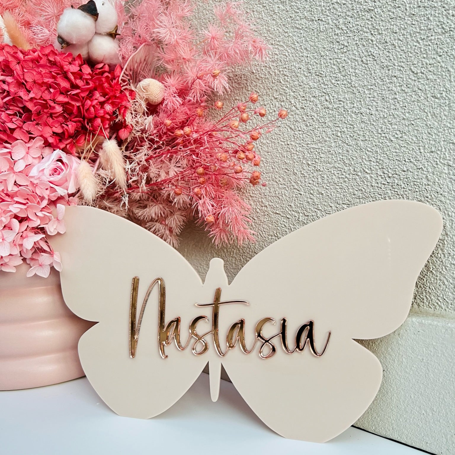 Our butterfly plaques are made to either hang on the wall using 3M command strips or placed on a dresser leaning onto another object or the wall.