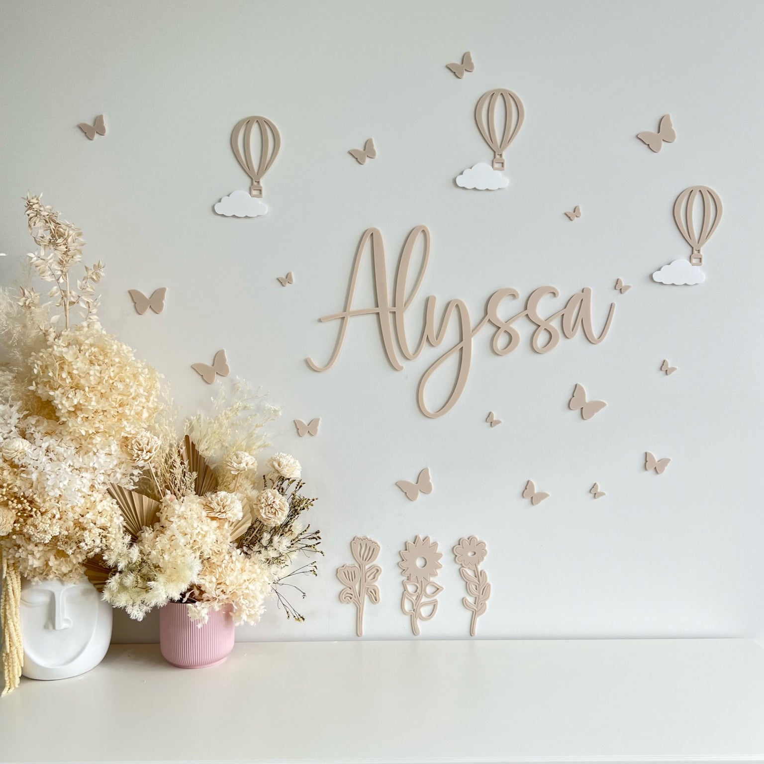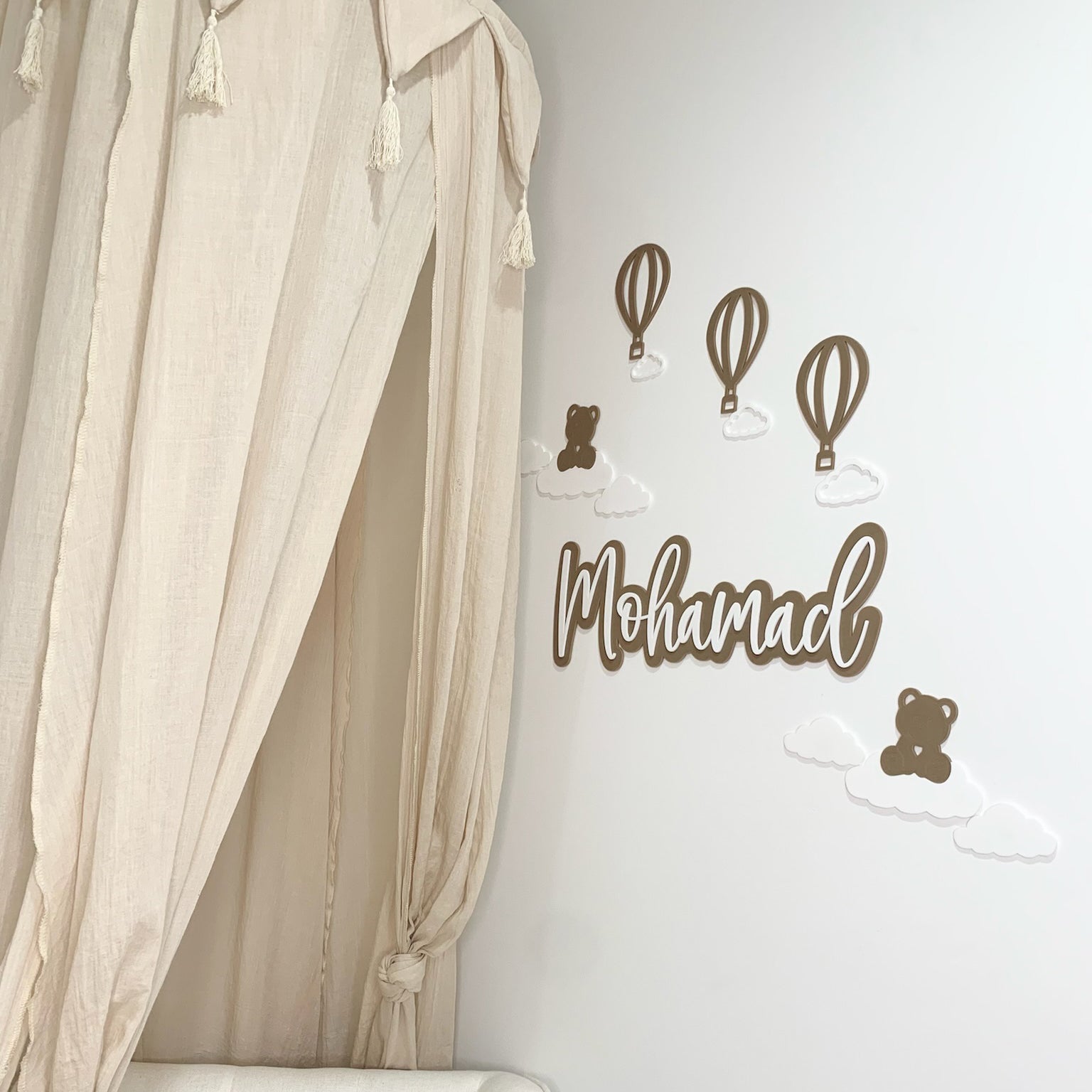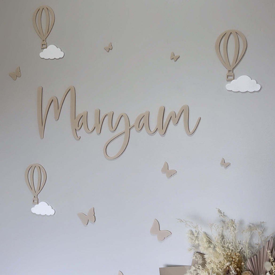 Disclaimer: Please be mindful all clouds will arrive in white acrylic and the colour option is for the hot air balloon only.
