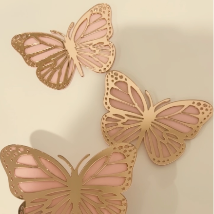 Our set of 3 layered butterflies are made up of two layers of acrylic which add a reflective look to each butterfly. Paired perfectly with a name plaque or any of our other accessories, our layered butterflies will elevate your little ones wall feature in any room.