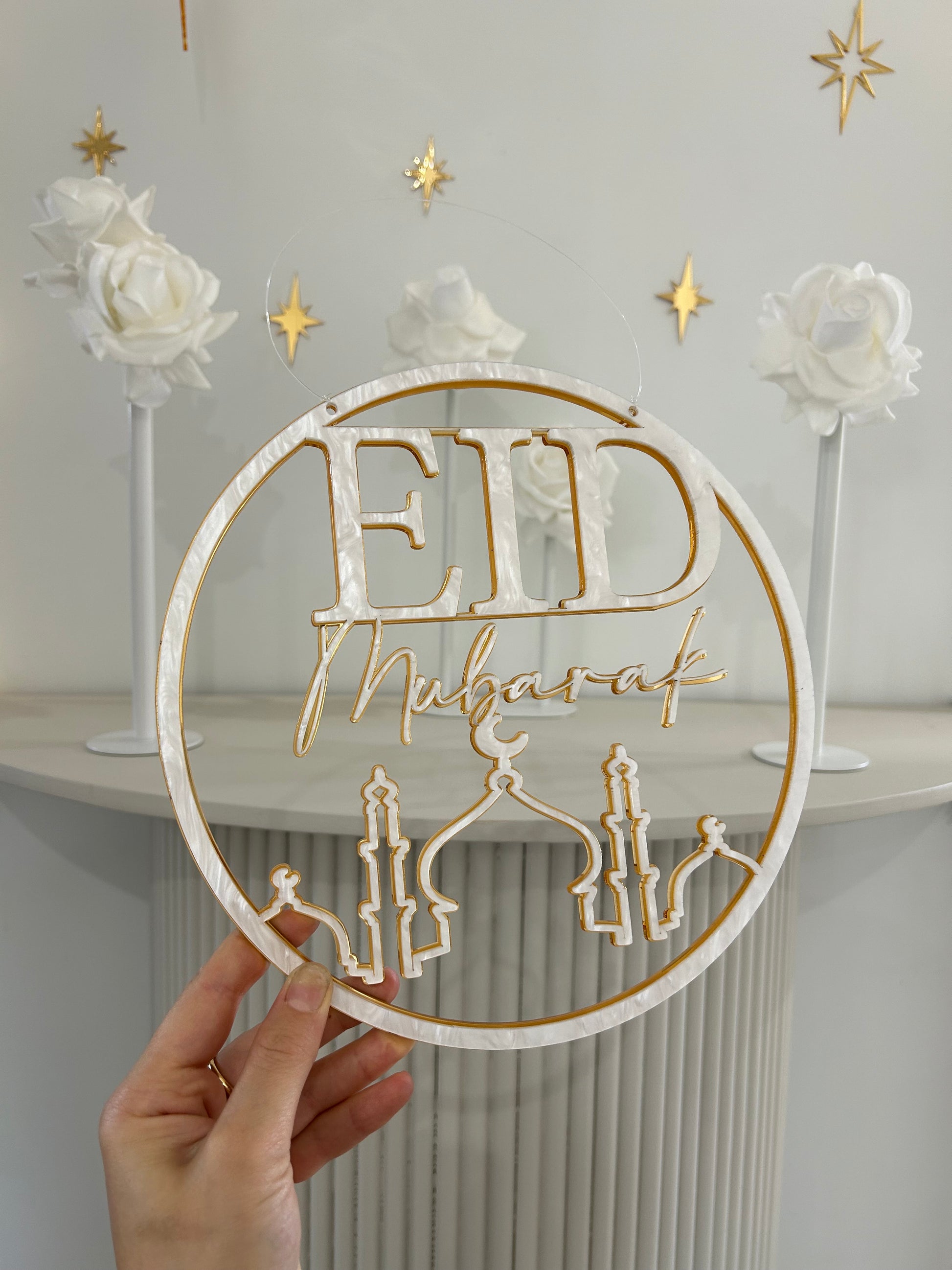 Welcome your guests this Ramadan and Eid with our Mosque door sign. With two holes and an invisible like rope, this door sign will make the perfect piece to hang on your door and/or entryway.