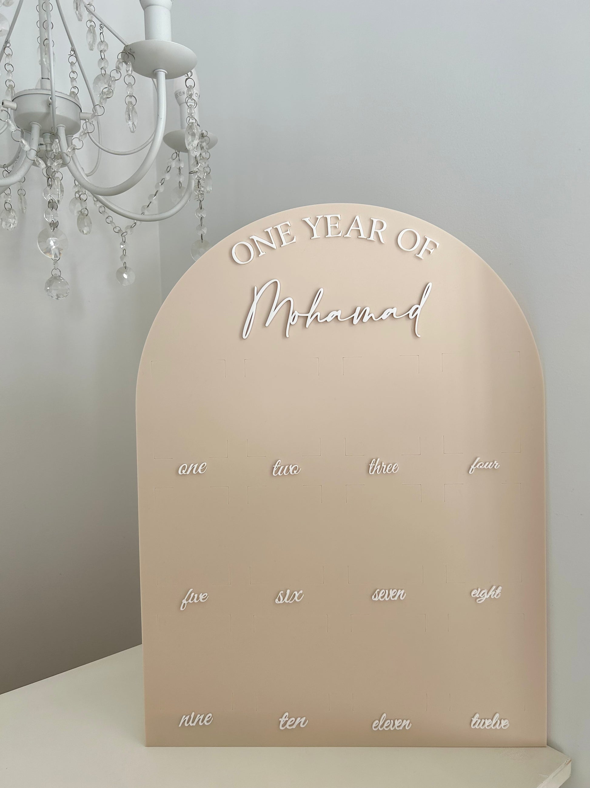 Always remember your baby’s first year with our one year acrylic board. Made from your colour of choice acrylic board and 3mm acrylic wording. Customise this board to suit your little ones room. A gorgeous keepsake piece to always cherish.