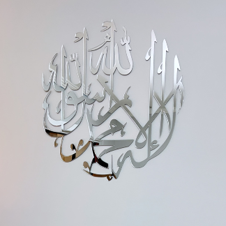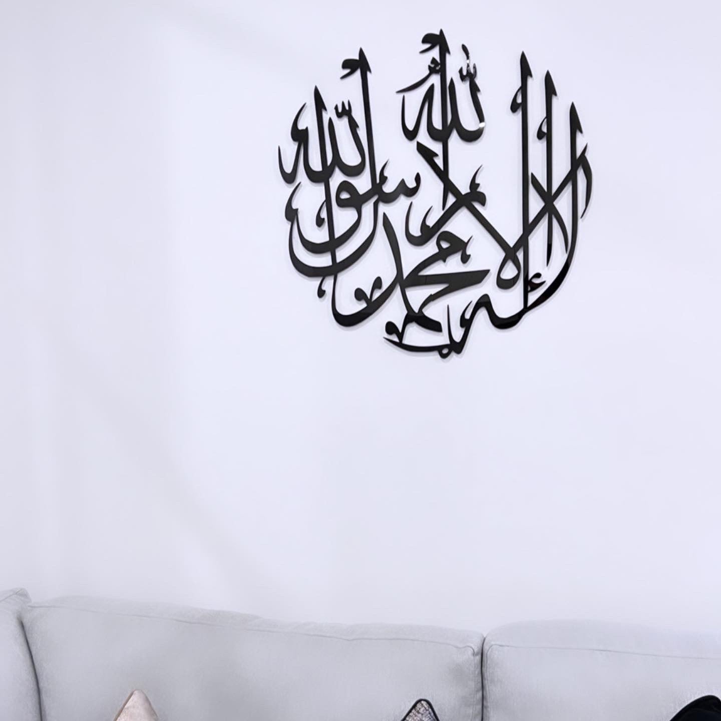 This round Shahada plaque is translated as ‘ ASH-HADU ANNA LA ILAHA ILLA ALLAH WA ASH-HADU ANNA MUHAMMADAN RASULU ALLAH’ which means ‘I bear witness that no one deserves to be worshiped except Allah and I bear witness that Muhammad is the Messenger of Allah’. A beautiful reminder to add to any home.